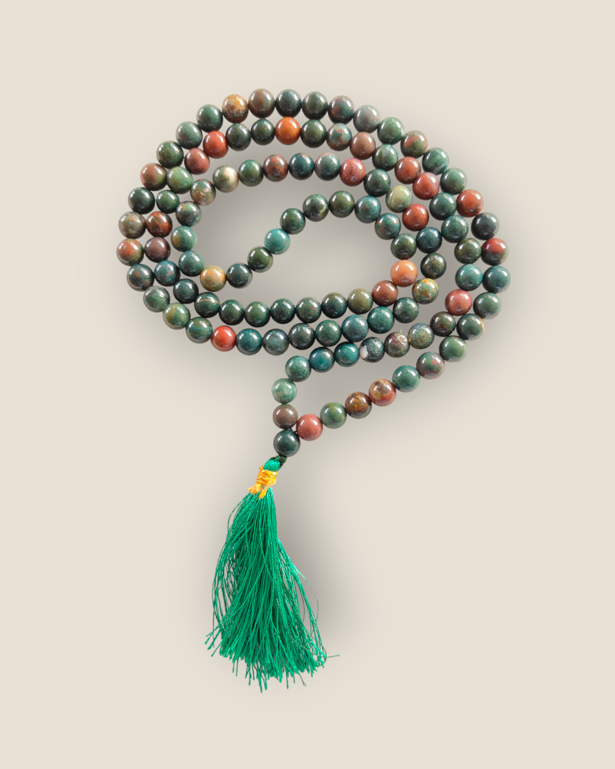 Add to cartEmbrace the revitalizing energy of our Crystal Stone Bloodstone Mala, a symbol of strength, courage, and vitality. Bloodstone, with its deep green hues, flecked with red, is revered for its potent healing properties and astrological significance. This powerful stone resonates with the root and heart chakras, grounding energy and promoting inner strength and resilience. Dive deep into the transformative energy of Bloodstone and awaken your innate vitality and courage.